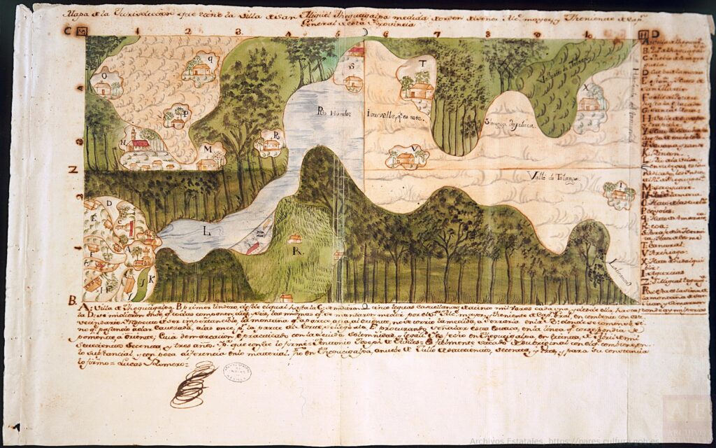 Entre el siglo XVI de Hermosilla y el ocaso administrativo del XVIII, el territorio de la Alcaldía Mayor fue mapeado con una precisión que preludiaba la presión fiscal venidera. El Mapa de la Jurisdicción de Tegucigalpa de 1763 es el testimonio visual de esta organización. En él se observa la consolidación del espacio geográfico que serviría de escenario para la recaudación: desde la Villa de Tegucigalpa (A) hasta el pueblo de Comayagüela (C), conectados por la arteria del Río Grande.
